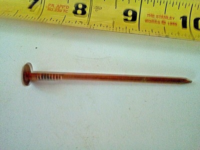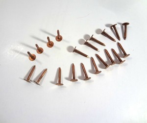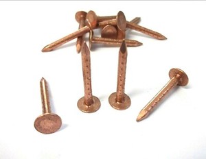 A copper roofing nail is used in various roof installations, notably in slate roofs for their ease of removal if the slate needs to be replaced as well as their corrosion resistance and malleability.