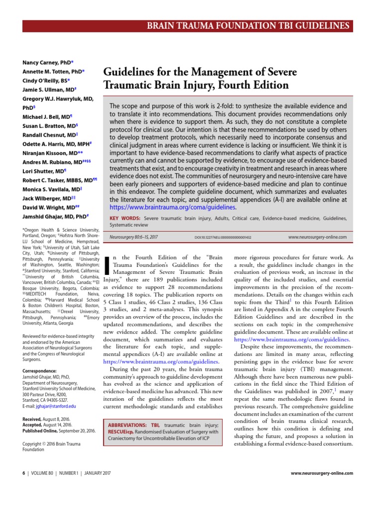View Brain Trauma Foundation Tbi Guidelines Images. See below or click here to view. Guidelines for the management of severe tbi, 4th ed.